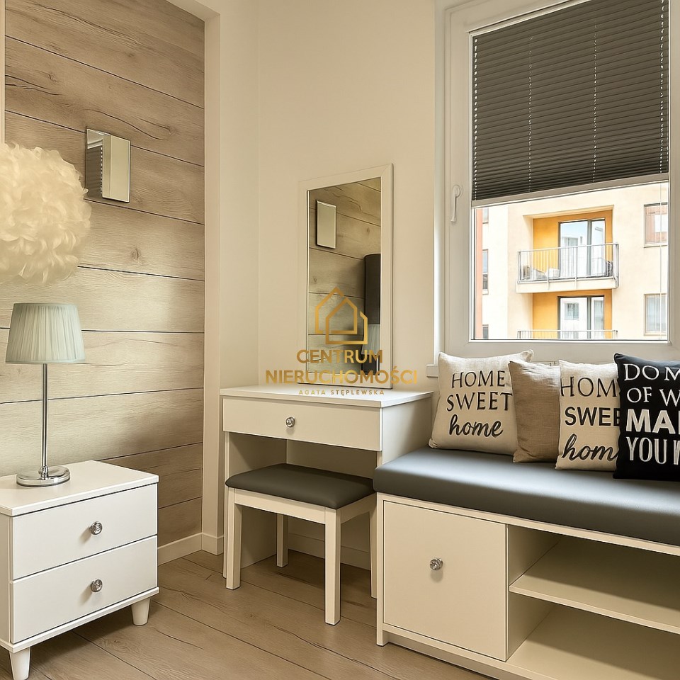 Na wynajem nowoczesne, w pełni wyposażone mieszkanie o powierzchni 55 m², położone na 1. piętrze w 4-piętrowym apartamentowcu z windą. Nieruchomość znajduje się na zamkniętym, kameralnym osiedlu z pięknie utrzymanymi terenami zielonymi, co zapewnia spokój i komfort życia.